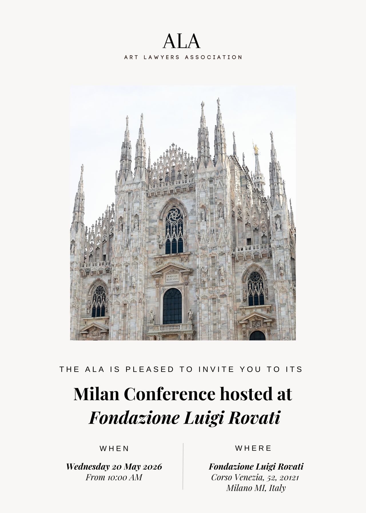 Lavinia Savini tra i relatori della conferenza dell’Art Lawyers Association, ospitata il prossimo 20 maggio presso la Fondazione Luigi Rovati, un appuntamento che si preannuncia di estremo interesse per il diritto dell’arte.